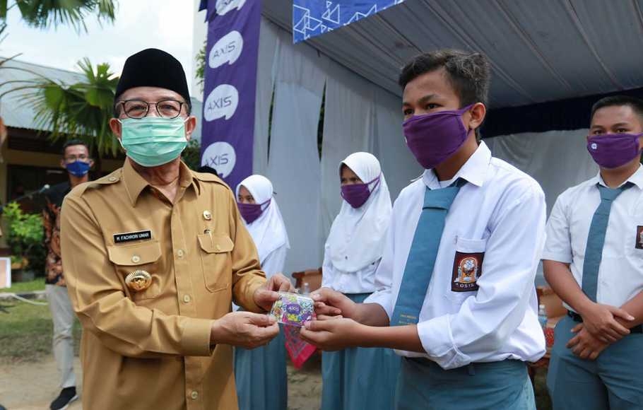 Bantuan paket kuota internet gratis tersebut secara simbolis diserahkan Gubernur Jambi, Fachrori Umar kepada perwakilan siswa sekolah menengah kejuruan (SMK) di SMK Negeri 1 Kota Jambi, Selasa (1/9/2020). Penyerahan bantuan paket kuota internet tersebt turut Manejer Wilayah PT XL- Axiata Jambi, Haris Alparizi, Pelaksana tugas (Plt) Kepala Dinas Pendidikan Nasional Provinsi Jambi Kelapa Dinas Komunikasi dan Informasi (Kominfo) Provinsi Jambi, Nurachmat Herlambang.