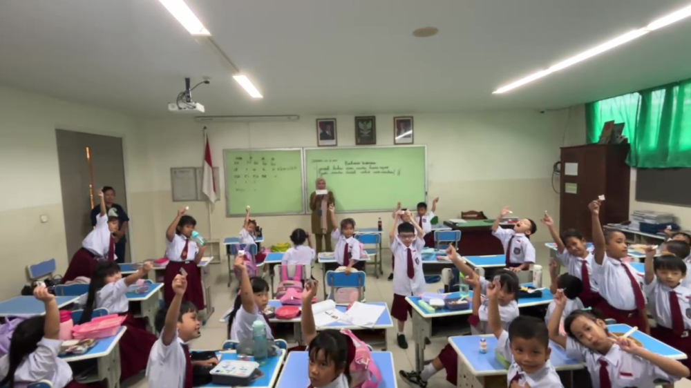 Pembagian Obat Cacing Kelas 1,2 dan 3 SD Xaverius 1 Jambi