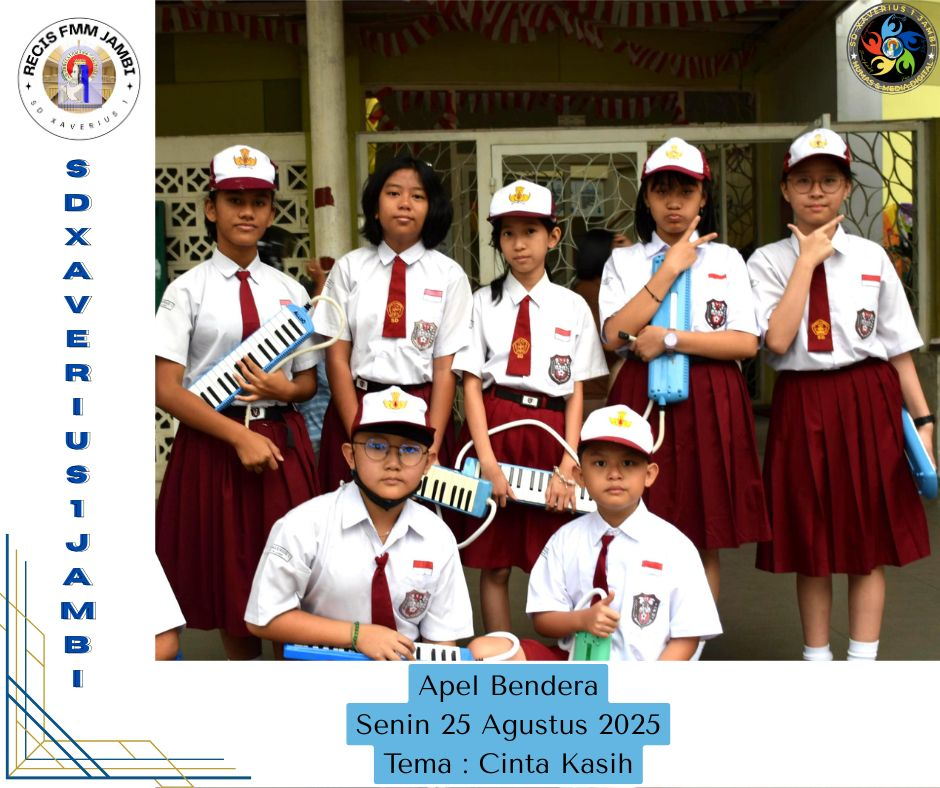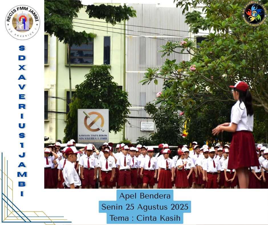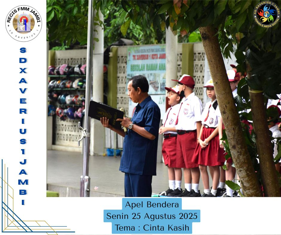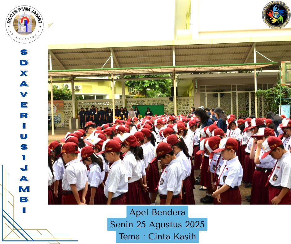 Apel Bendera Senin 25 Agustus 2025 Tema : Cinta Kasih Pembina Apel : Pak Al. Indriyantono S.Pd. SD Petugas Apel : Kelas 6B