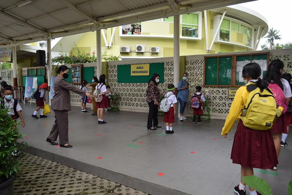Hari pertama PTM Terbatas di SDS Xaverius 1, Senin, 4 Oktober 2021, semoga berjalan dengan lancar, aman, dan kondusif. Anak-anak sangat antusias untuk belajar, bertemu dengan guru dan teman yang sudah lama dirindukan. Para guru sudah Vaksin dan tes swab antigen. Tetap semangat. Tuhan memberkati