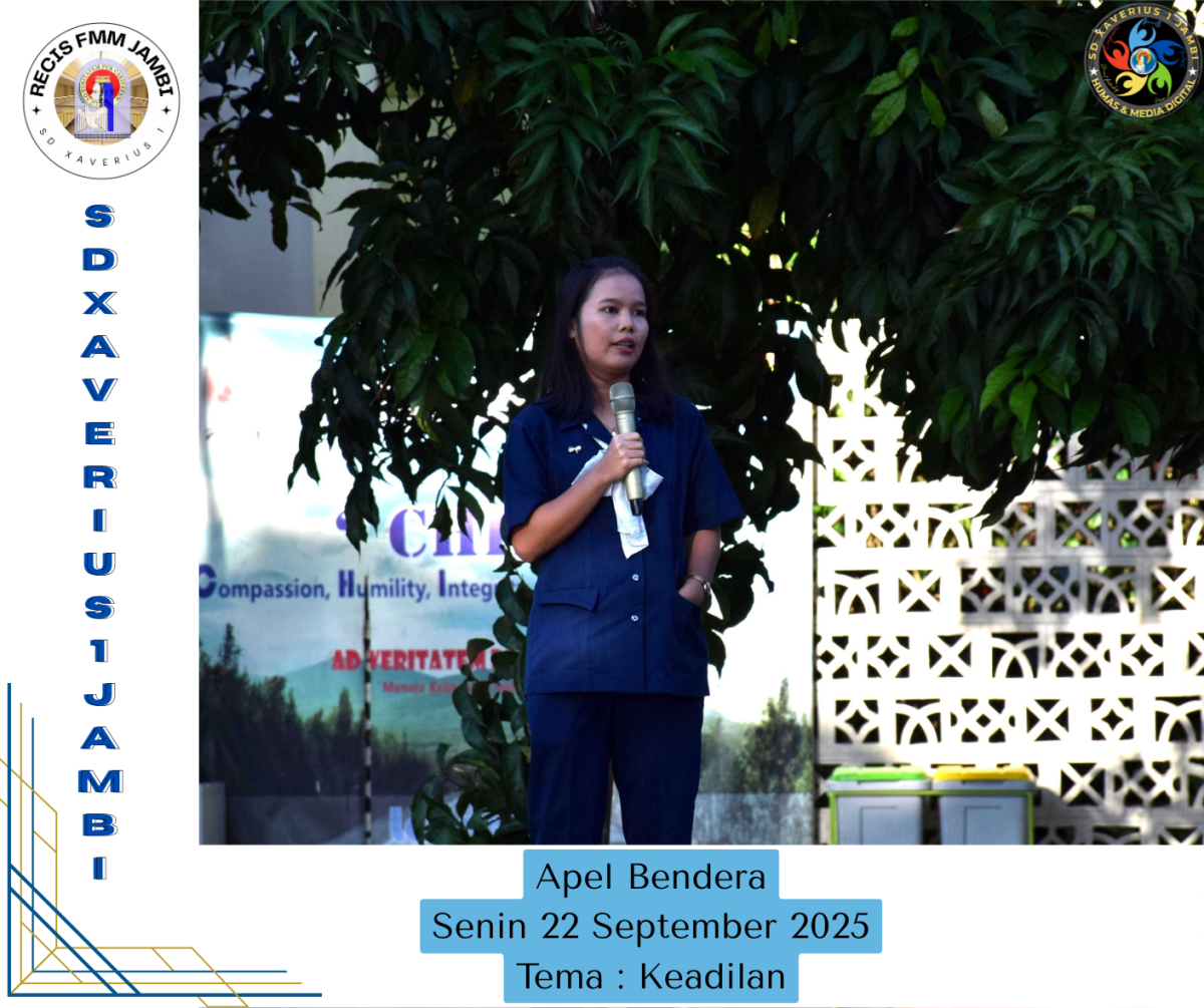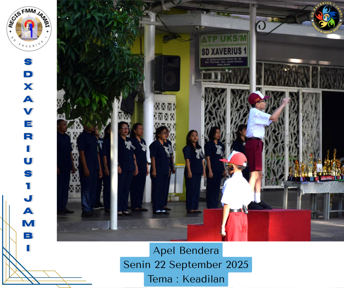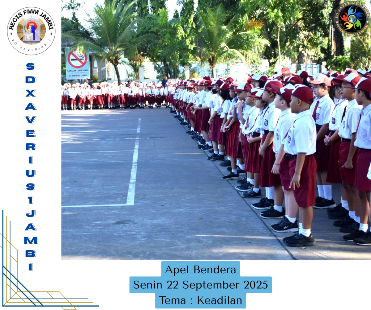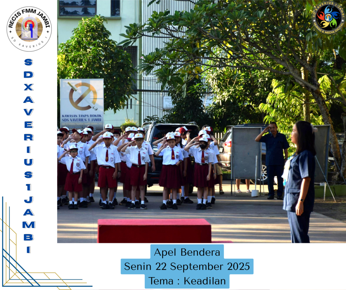 Apel Bendera Senin, 22 September 2025 Petugas : 1. Pembina Apel Ibu Lita Febriani 2. Tema : Kedilan 3. Petugas Apel Bendera 6D 4. Pengumuman Prestasi siswa kelas 3 dan 4